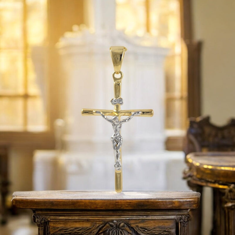 Gold Filled 18K Two Tone Crucifix Large Charm